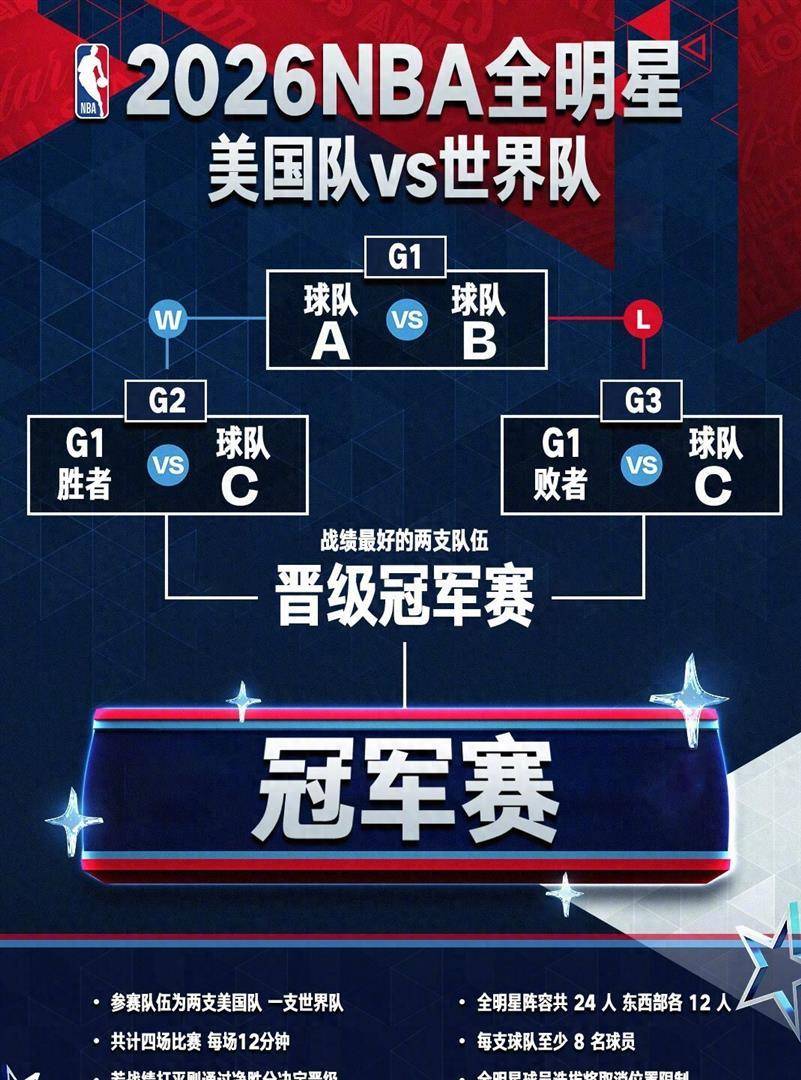 亚博,Yabo,亚博体育,亚博官网/yabo亚博是华人市场遥遥领先,全球市场先进的品牌,含旗下亚博体育、亚博电竞、亚博现场等各种项目。全新版本亚博手机应用闪耀登场,全新界面、全新体验,通过按钮访问亚博电脑/手机网页版或下载亚博全站/体育手机app应用程式。今年的全明星正赛和过去完全不一样。 联盟取消了大家熟悉的东西部对抗,也取消了队长选人环节。 他们搞出了一个新玩法:把24位全明星球员分成三支队伍。 两支是由美国本土球员组成的队伍,分别叫“美国星条队”和“美国新星队”,还有一支是由国际球员组成的“世界队”。 这三支队伍要打一个小型循环赛,每场比赛只打12分钟,节奏非常快。 循环赛打完,战绩最好的两支队伍才能晋级最后的冠军赛。 如果三队都是一胜一负,那就要看谁赢球时赢的分更多。 这个赛制从规则上就逼着球星们不能“划水”,因为每一分都可能决定最终能否晋级。