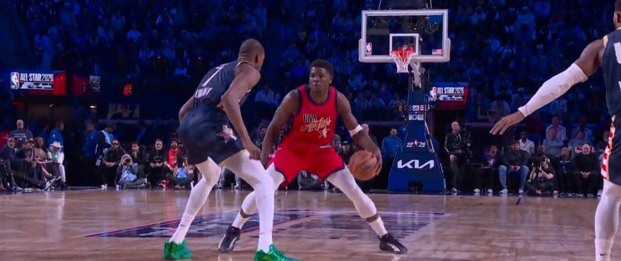 循环赛的第一场,是由美国新星队对阵世界队。 美国新星队听名字就知道,是一帮年轻有为的球员,像安东尼·爱德华兹、德文·布克、凯德·坎宁安、斯科蒂·巴恩斯这些新生代的代表人物都在阵中。 他们的对手世界队则星光熠熠,由卢卡·东契奇、尼古拉·约基奇和维克托·文班亚马这三位国际巨星领衔。 那场比赛同样打得难解难分,最后时刻斯科蒂·巴恩斯命中一记三分球,帮助美国新星队以37比35险胜世界队,也为整个比赛日的“绝杀”主题拉开了序幕。